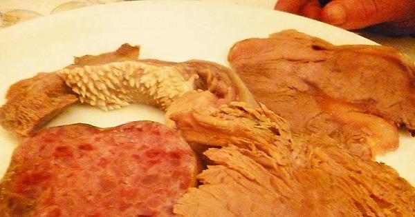 Grande protagonista è la carne di Parma: la carne Sapoeri da vacche e buoi di razza piemontese allevati nelle campagne di Fontanellato dall'azienda agricola An.fo.ra. di Casalbarbato di Fontanellato.