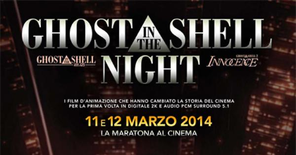 Dopo il successo della Evangelion Night, portata al cinema da Nexo Digital, arriva la maratona anime dei due film Ghost in the Shell 2.0 e Ghost in the Shell: Innocence, diretti da Mamoru Oshii, al cinema per il pubblico italiano solo l'11 e il 12 marzo 2014, per la prima volta in digitale 2K e audio pcm surround 5.1.