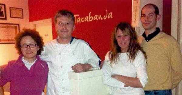 Un locale giovane, moderno, informale. Una osteria che si trasforma in ristorante di qualità e pizzeria, un luogo dove puoi ascoltare buona musica mentre bevi l’aperitivo o fai uno spuntino. E’ gestito da giovani, con tante idee e altrettanta buona volontà, il Tacabanda di via Marmolada 2 a Cremona. E’ il posto giusto per un pranzo veloce o per passare una serata in compagnia mangiando bene e bevendo discretamente. Il Tacabanda, che si affaccia all’angolo di porta Romana, è stato aperto il 29 dicembre 2004, dopo mesi di duro lavoro e lunghe attese. L’abilità degli artigiani che lavorarono per renderlo caldo e prezioso unita alla passione dei titolari per il buon bere, per la cucina e per la buona musica hanno reso con il tempo questa osteria uno dei locali prediletti dalla clientela cremonese. Il pubblico ne apprezza l’ospitalità, la cura nei dettagli e voglia di proporre iniziative diverse dal solito. I concerti del sabato sera, le cene col delitto, le sva- riate iniziative che si sono susseguite nel tempo e che continuano hanno riscosso un forte successo nel pubblico. Nel giugno del 2010 una nuova sistemazione del locale, con colori diversi e la struttura in palco per la cena. Il menù è davvero ricco di proposte, ce n’è davvero per tutti i gusti. Fra gli antipasti non sono da perdere il tor- tino con cuore di chiodini e fonduta al provolone su coulis allo zafferano, la spadellata di verdure, la culatta di Zibello con carciofo alla romana o i classici salumi al tagliere. Vasta anche la gamma dei primi. Si va dai tortelli di zucca agli gnocchet- ti di patate e spinaci, dai marubini cremonesi ai tre brodi al risotto alla birra rossa doppio malto. Per quanto riguarda i secondi, da non perdere i guancialini di maiale stufati accompagnati da funghi chiodini e sformatino di polenta, la tagliata alle tre salse (Martini bianco e timo, barbecue e liquirizia), la taglia- ta di manzo all’aceto balsamico. E per chi vuole essere meno formale, il galletto alla brace o l’hamburger Tacabanda con macinato, salsa al Martini, provola affumicata, pomodoro e insalata. Numerose anche le insa- latone, con tutti gli ingredienti di stagione e molta fantasia. Ma c’è anche la torta fritta con misto di salumi, spalla di San Secondo e gorgonzola dolce. Anche per quanto riguarda i dolci la scelta è vasta. Noi consigliamo il gran dessert (indicato per due persone) che è un misto di prodotti fain casa. Molto gradevoli anche il gelato, magari con la macedonia. Non dimentichiamo le pizze e le schiacciate e con poco lievito. Sono molto digeribili, gustose e presenta- te bene nel piatto. La scelta è fra 24 specialità diverse. Discreta la carta dei vini, con etichet- te soprattutto delle zone vicine a Cremona, anche se non mancano bottiglie del Trentino, Friuli, Piemonte e Toscana. Chi non beve vino può consolarsi con una buona varietà di etichette di birra. I patron sono Laura Morelli e Carlo Bertolotti, un raffinato chef di grande esperienza. Il cuoco è Giuliano Fava. La sala è curata da Elisa Fratti.Funziona anche un servizio da asporto. Ogni anno il Tacabanda organizza corsi di cucina amatoriale che mirano a insegnare le basi della cucina toccando argomenti che spa- ziano dalle paste ripiene a quelle lie- vitate, dai piatti unici ai dessert, dalla carne al pesce, alle verdure e abbracciano la tradizione italiana e la cucina internazionale. Ciascuna lezione ha la durata di 4 ore circa dalle 19,30 alle 23,30, si svolge il martedì sera e prevede al temine la degustazione dei piatti preparati in abbinamento ai vini.