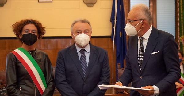 Accanto al prefetto, il presidente della Provincia, Mirko Signoroni, i sindaci di Crema, Stefania Bonaldi, Cremona, Gianluca Galimberti, Casalmaggiore, Filippo Bongiovanni. Il prefetto si dice «onorato di consegnare, congiuntamente ai sindaci del territorio, questa onorificenza».