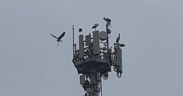 SESTO - Il ripetitore della Tim in viale Europa diventa una ‘casa’ per le cicogne. Oggi addirittura si sono contati ben sette esemplari posarsi tra le antenne del palo che assicurano la copertura ai telefoni cellulari.