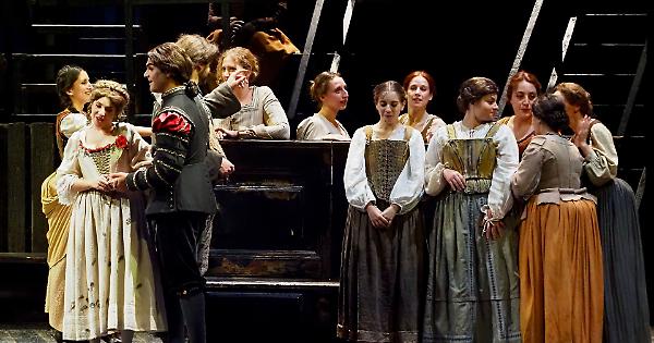 CREMONA - Don Giovanni è un giovane di soli 235 anni. Giovane il cast, giovane il direttore. Un Don Giovanni che corre, strepita, combatte e ama conquista un teatro Ponchielli da tutto esaurito e pieno di giovanissimi scolaretti, incredibilmente silenziosi (almeno fino alla fine del primo atto). L’allestimento (tradizionalissimo e, invero, un po’ statico) di Mario Martone si riduce a una scena fissa, composta da scranni lignei ove risiedono coro e interpreti per tutta la durata dell’opera. Sono gli uomini e (soprattutto) le donne colpite dalle infamie commesse da Don Giovanni, che, a mano a mano, si trova sempre più solo, fino a trovarsi da solo – con Leporello, che si nasconde – di fronte al giudizio finale, impartito dalla figura simbolica della statua/fantasma del Commendatore, trafitto da Don Giovanni al principio dell’opera dopo aver tentato di violentarne la figlia, e infine, sempre solo, avvolto tra le fiamme dell’inferno e trascinato in un aldilà di spiriti e visioni spaventose.